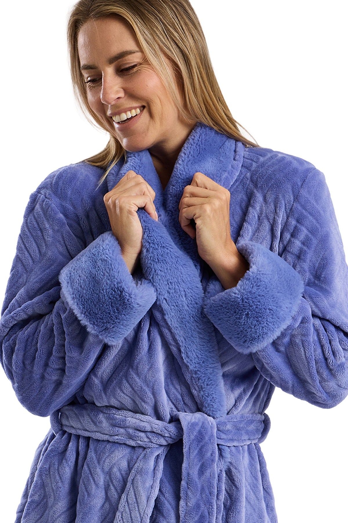 - Cosy Shawl Collar Robe With Luxe Faux Fur Trim