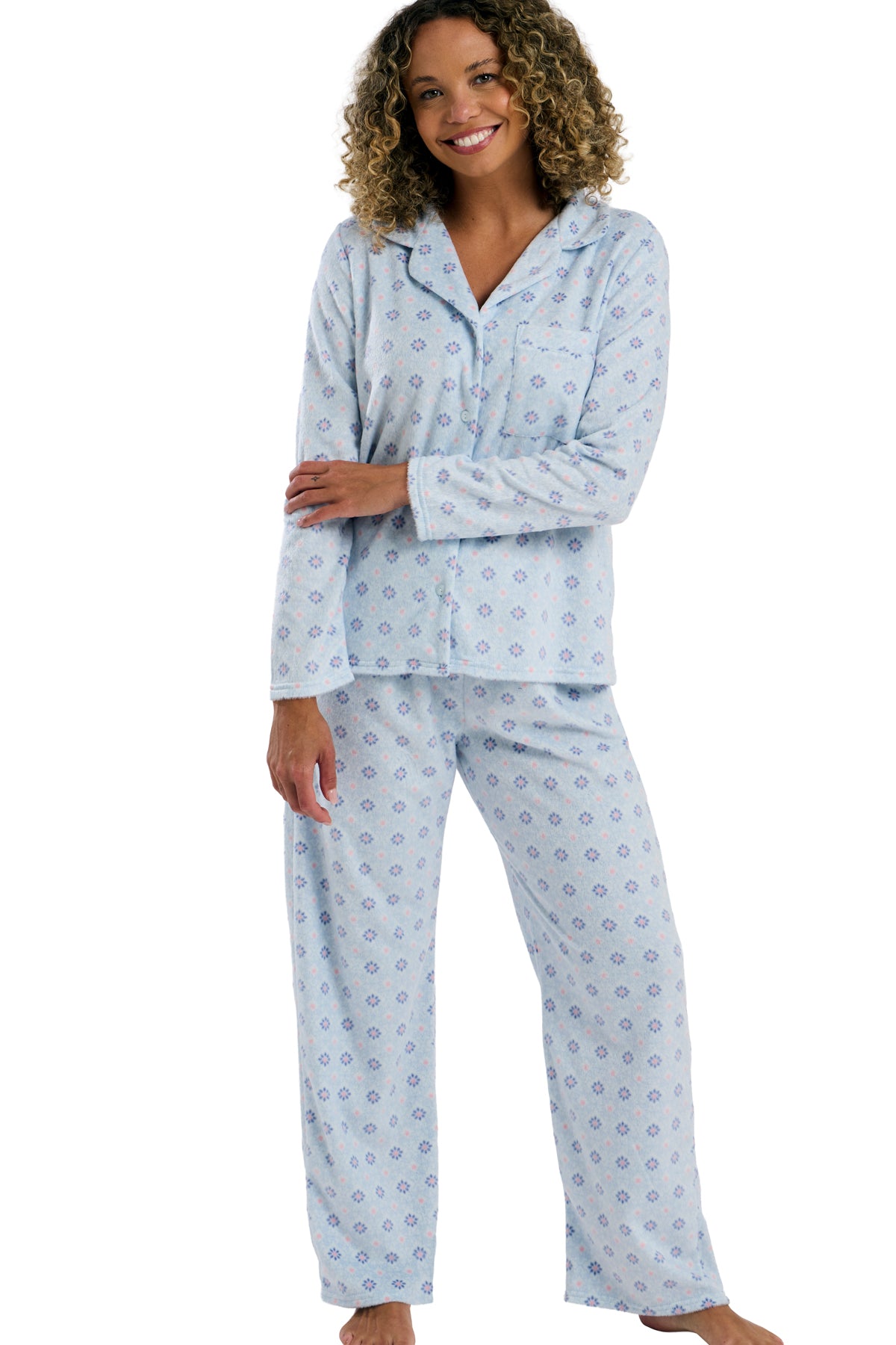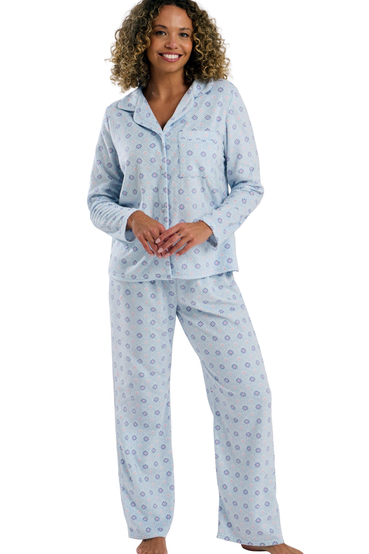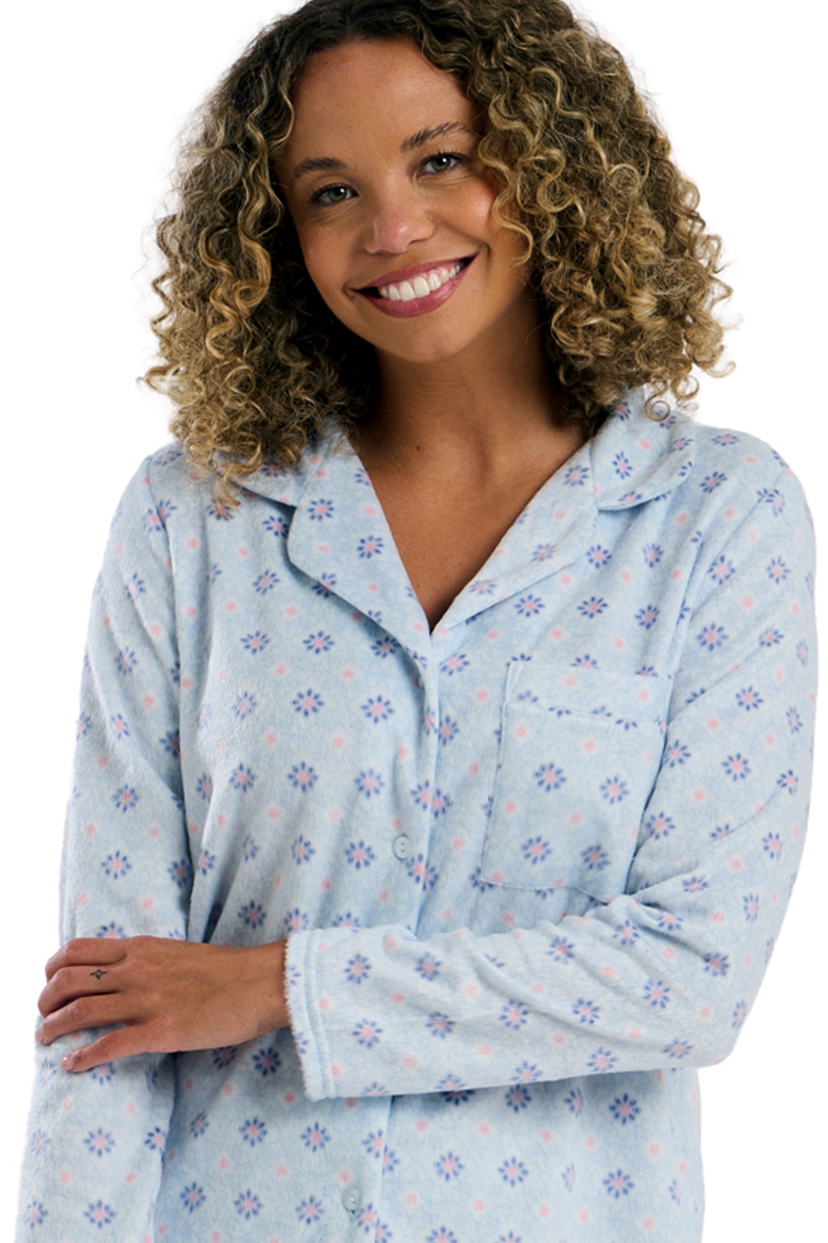 Wrap yourself in comfort and style with this Indigo Sky ultra-soft fleece PJ set, featuring a charming geometric print. Designed with a classic revere collar, it blends timeless pyjama elegance with cosy loungewear relaxation. Available in soothing shades of Blue or Pink, our Pretty Geometric print adds a playful touch to your bedtime routine. Whether you're gifting or simply upgrading your lounge look — this set makes every night feel special. Because sleepwear should be anything but boring!