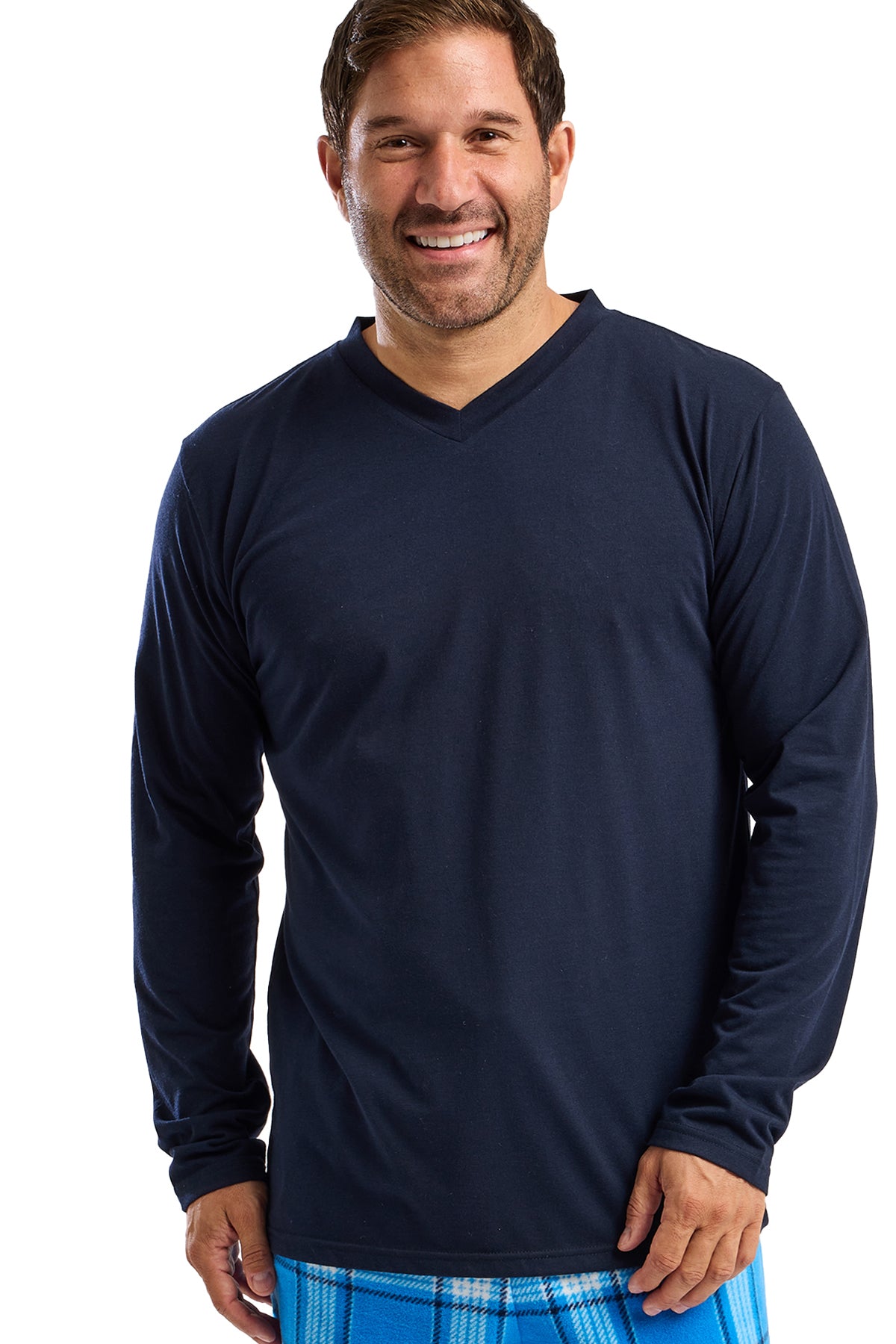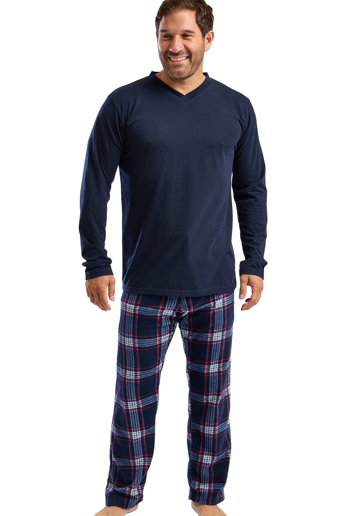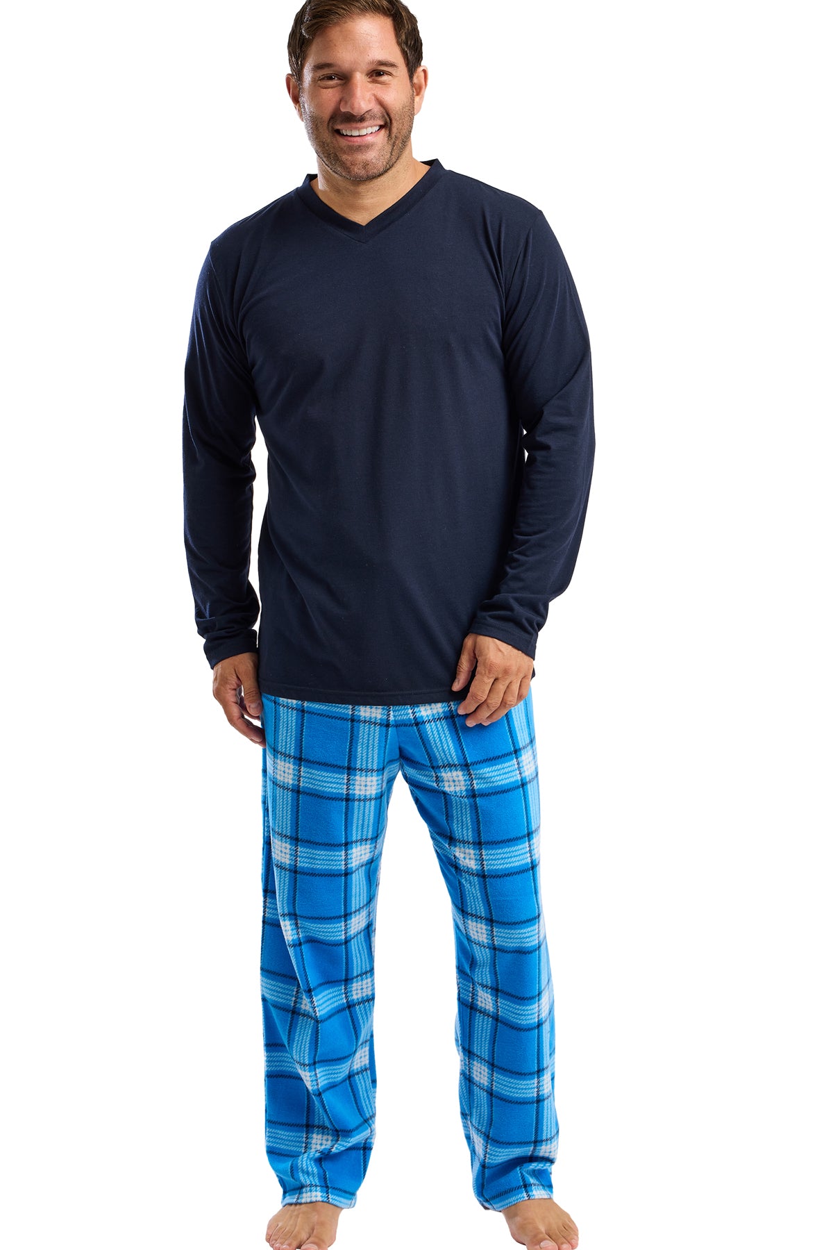 • Long sleeved knit v-neck top & fleece pj pants set by Marlon for Men