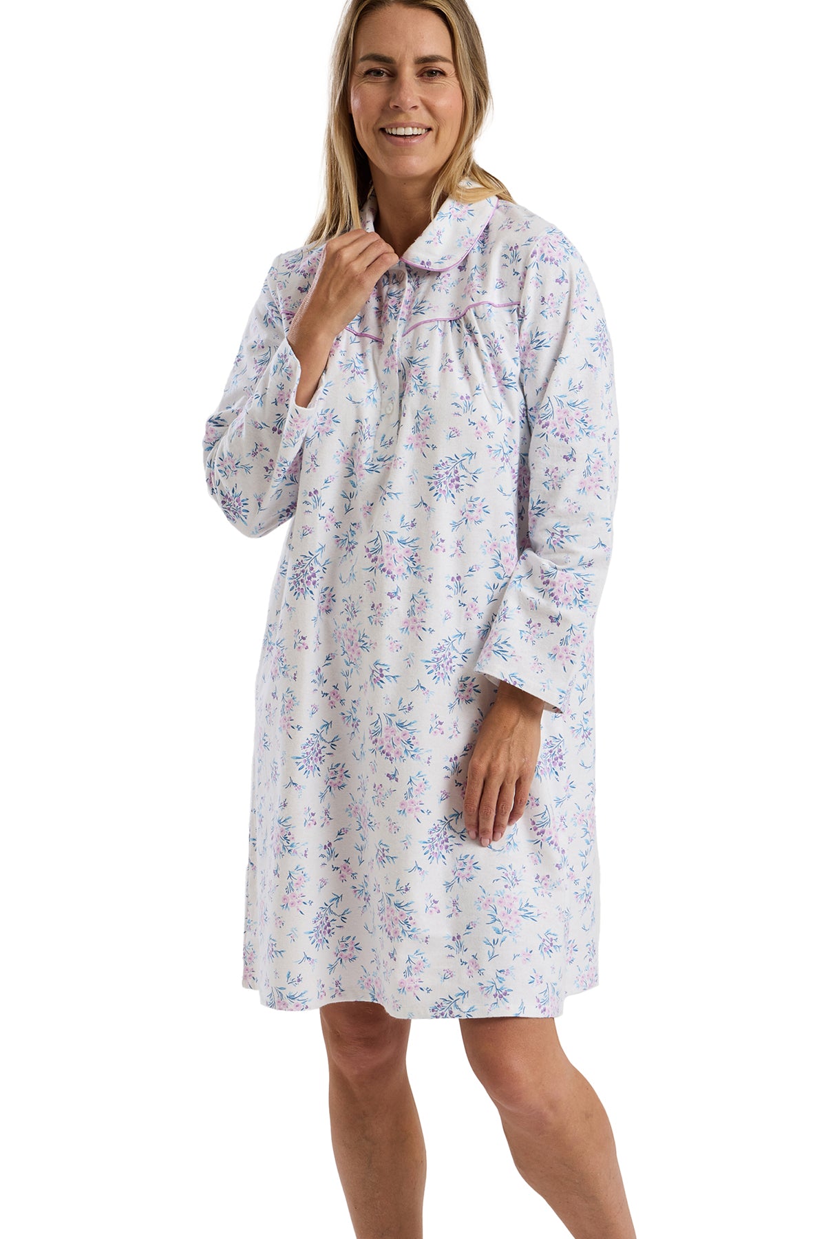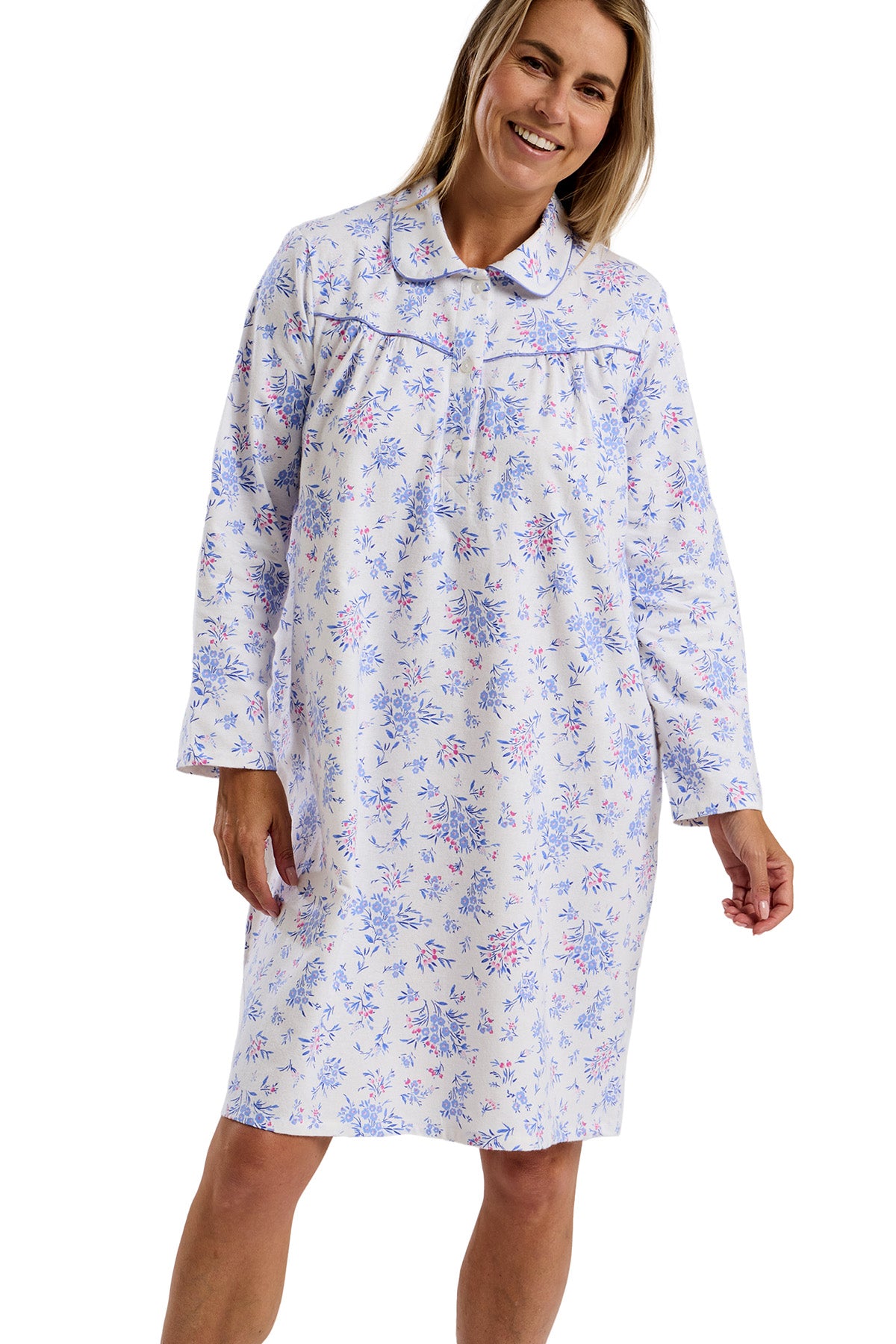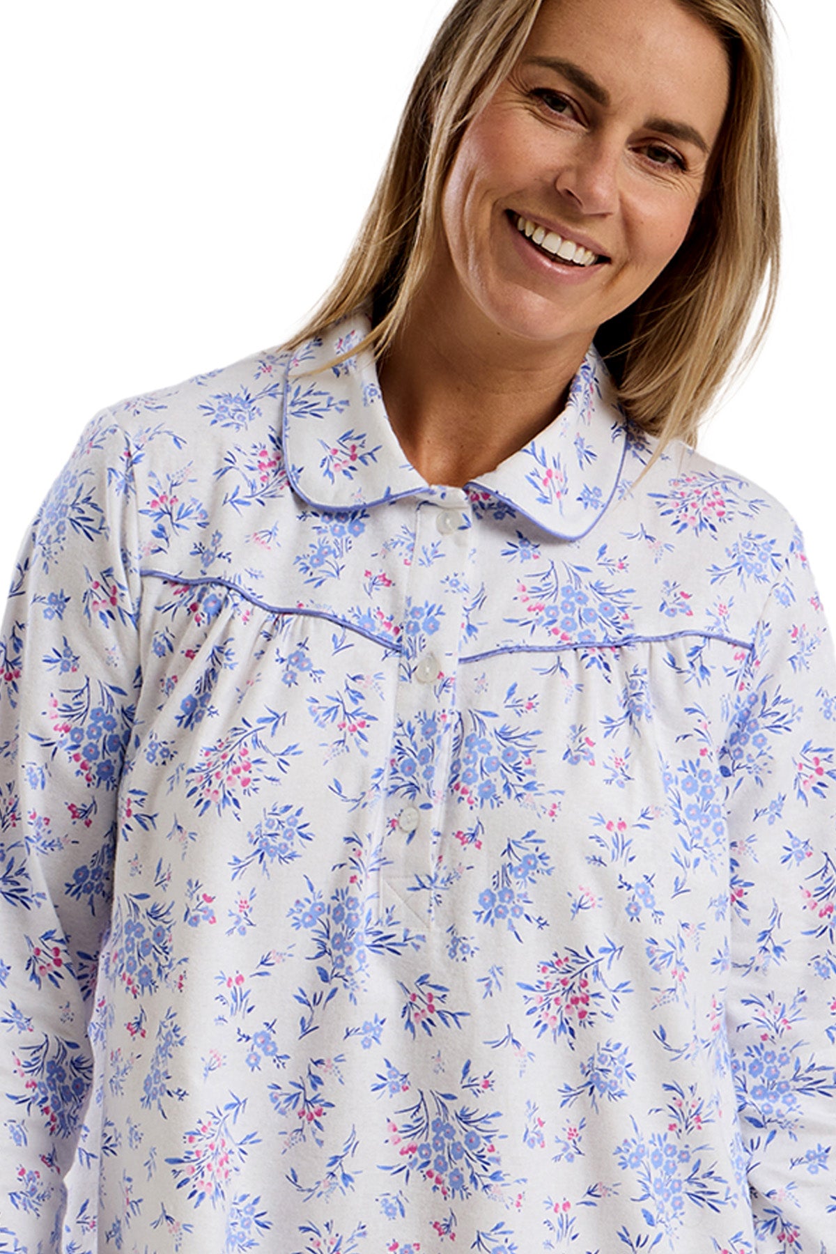 Pretty Floral Bouquet Soft Brushed Cotton Shorter Length Nightdress