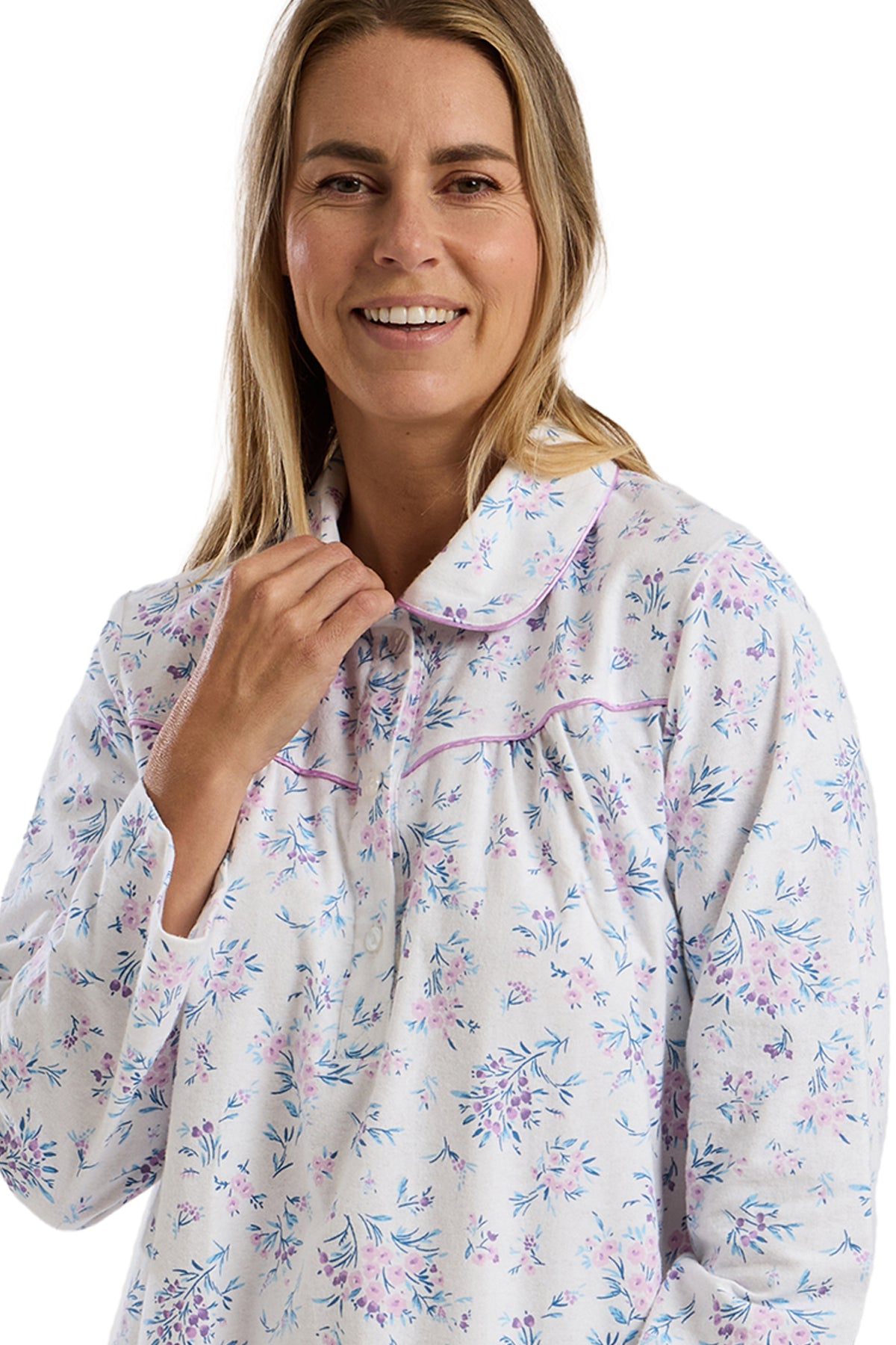 Made from 100% brushed cotton winceyette, this nightdress feels wonderfully soft against the skin. Featuring our Pretty Floral Bouquet print in soothing Lavender or Blue, and finished with slim satin piping for a hint of elegance. At a shorter 40" length, it’s perfect for petite ladies who appreciate classic style and all-night comfort