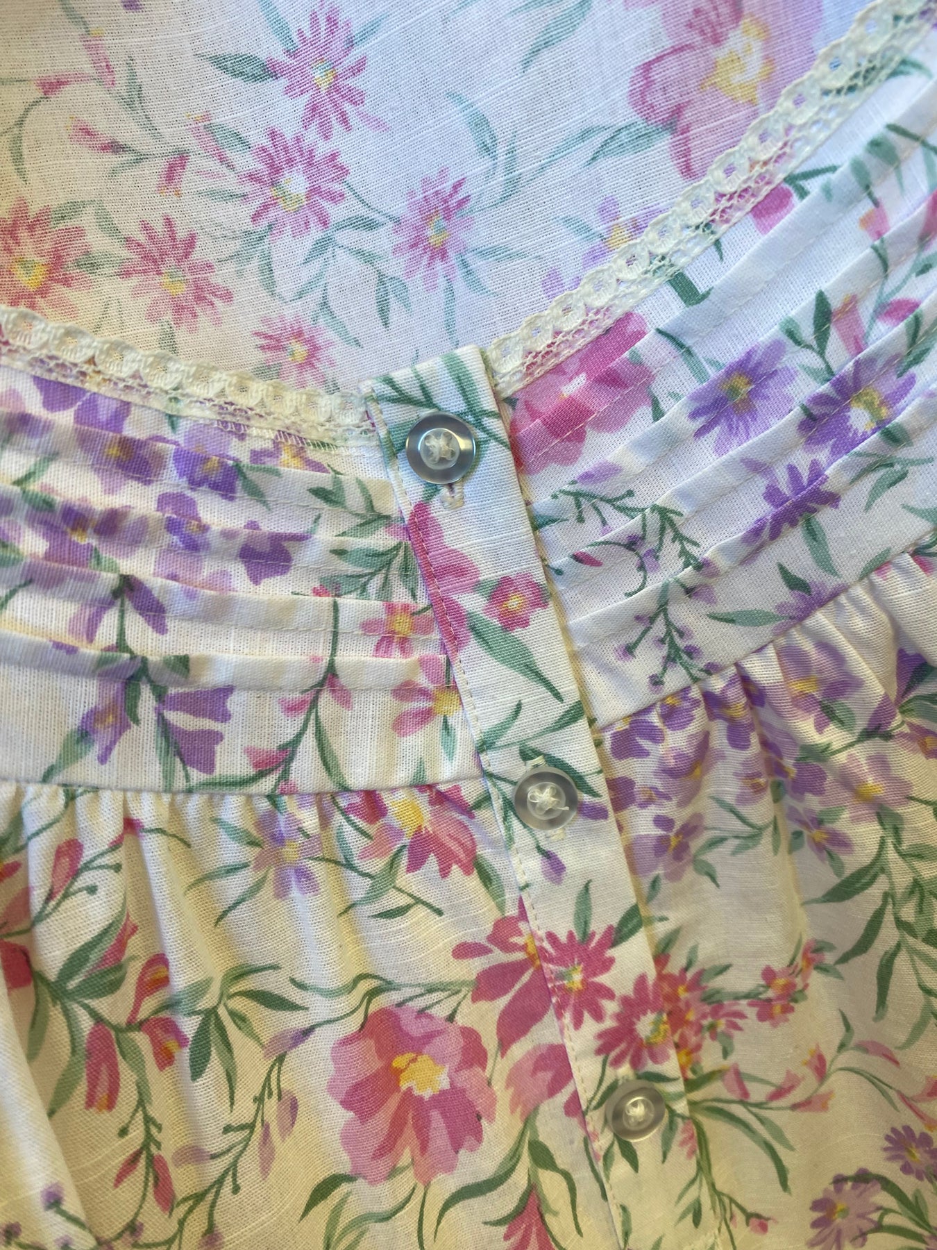 - Short Button Front Placket & Pintucks Detail